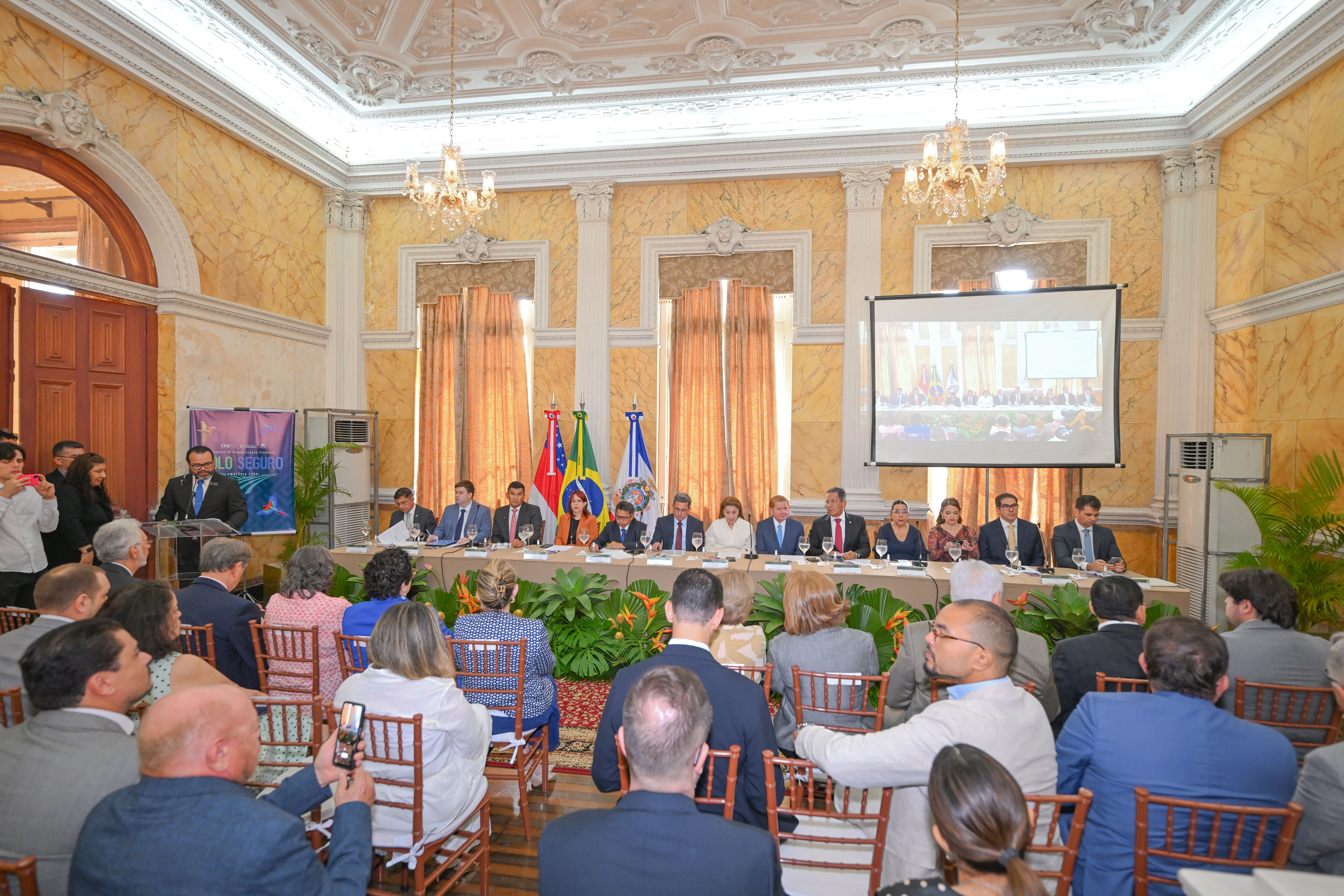 Representando o MPAM, a procuradora-geral de Justiça (PGJ), Leda Mara Nascimento Albuquerque, acompanhada da subprocuradora-geral de Justiça para Assuntos Jurídicos e Institucionais Anabel Vitória Pereira Mendonça de Souza, participou da solenidade ao lado de autoridades do sistema de Justiça, representantes do Conselho Nacional de Justiça (CNJ) e gestores públicos estaduais e municipais.