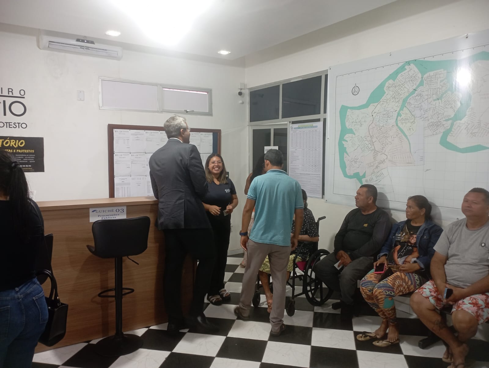 A primeira visita foi realizada no 1º Ofício, responsável por atribuições relativas ao protesto de títulos e ao tabelionato de notas — serviços que possuem repercussão direta na vida econômica e civil da comunidade, tanto para indivíduos quanto para empresas.