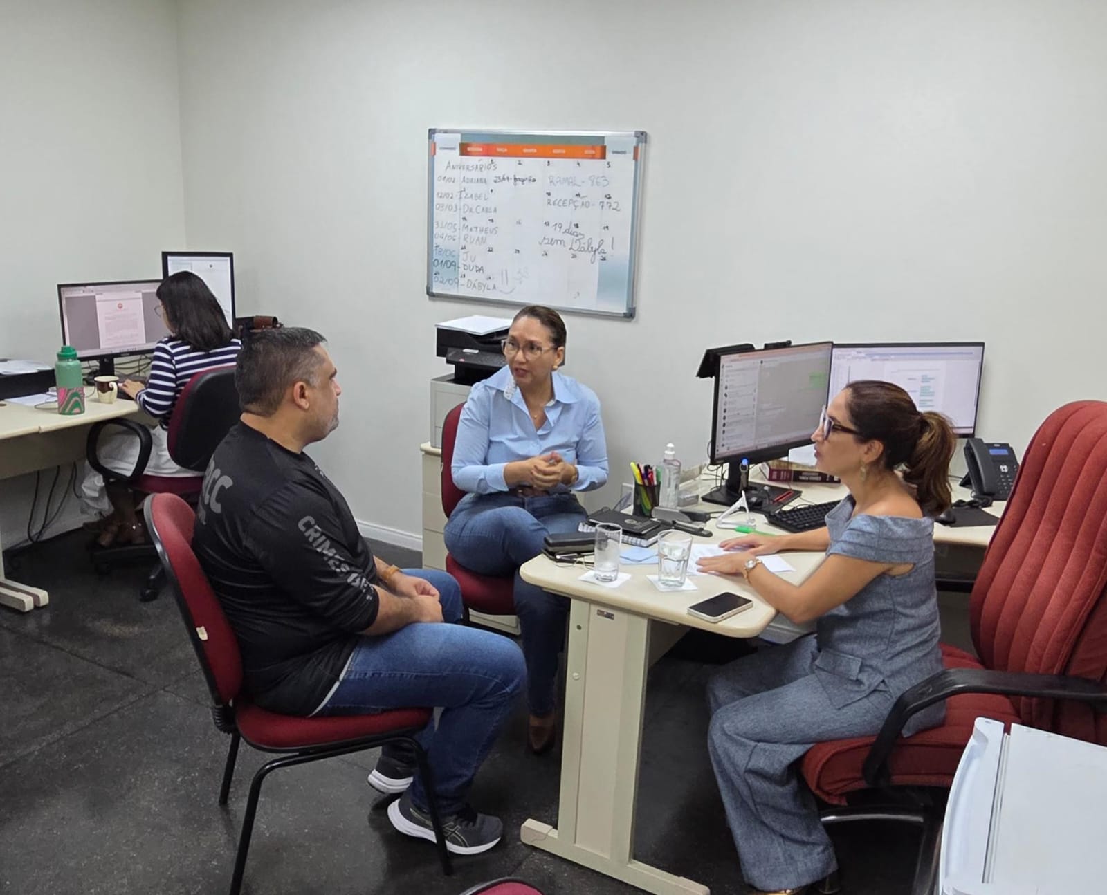 O Ministério Público do Estado do Amazonas (MPAM) realizou, nesta quinta-feira (16/10), uma reunião de alinhamento com o diretor de Planejamento da Polícia Civil do Amazonas (PC-AM), delegado Heron Ferreira da Silva Muneymne, para discutir o desenvolvimento do projeto “Diálogos entre MP e Polícia Civil” (nome provisório). O encontro ocorreu na sede da Procuradoria-Geral de Justiça e contou com a presença das promotoras de Justiça Carla Santos Guedes Gonzaga, coordenadora do projeto, e Christianne Corrêa Bento da Silva, da 21ª Promotoria de Justiça.
