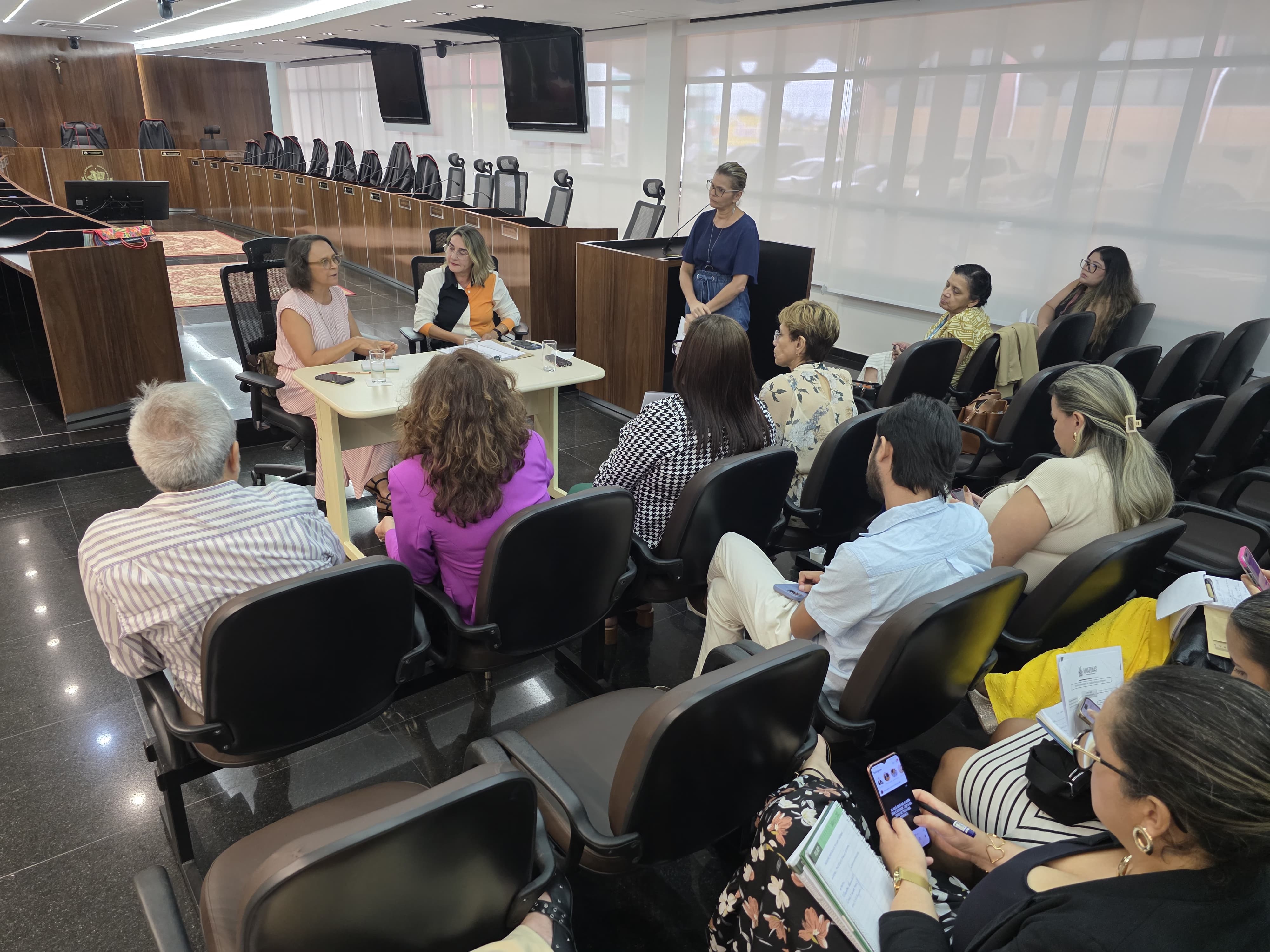 Em reunião realizada na quarta-feira (05/11), o MP, representado pelas promotoras de Justiça Cláudia Maria Raposo da Câmara e Luissandra Chíxaro de Menezes, titulares, respectivamente, das 54ª e 58ª Promotorias de Justiça de Defesa dos Direitos Humanos à Saúde Pública (PRODHSP), recebeu representantes das Secretarias de Saúde do Amazonas (SES-AM) e de Manaus (Semsa), da Fcecon e do Conselho de Secretários Municipais de Saúde do Amazonas (Cosems).