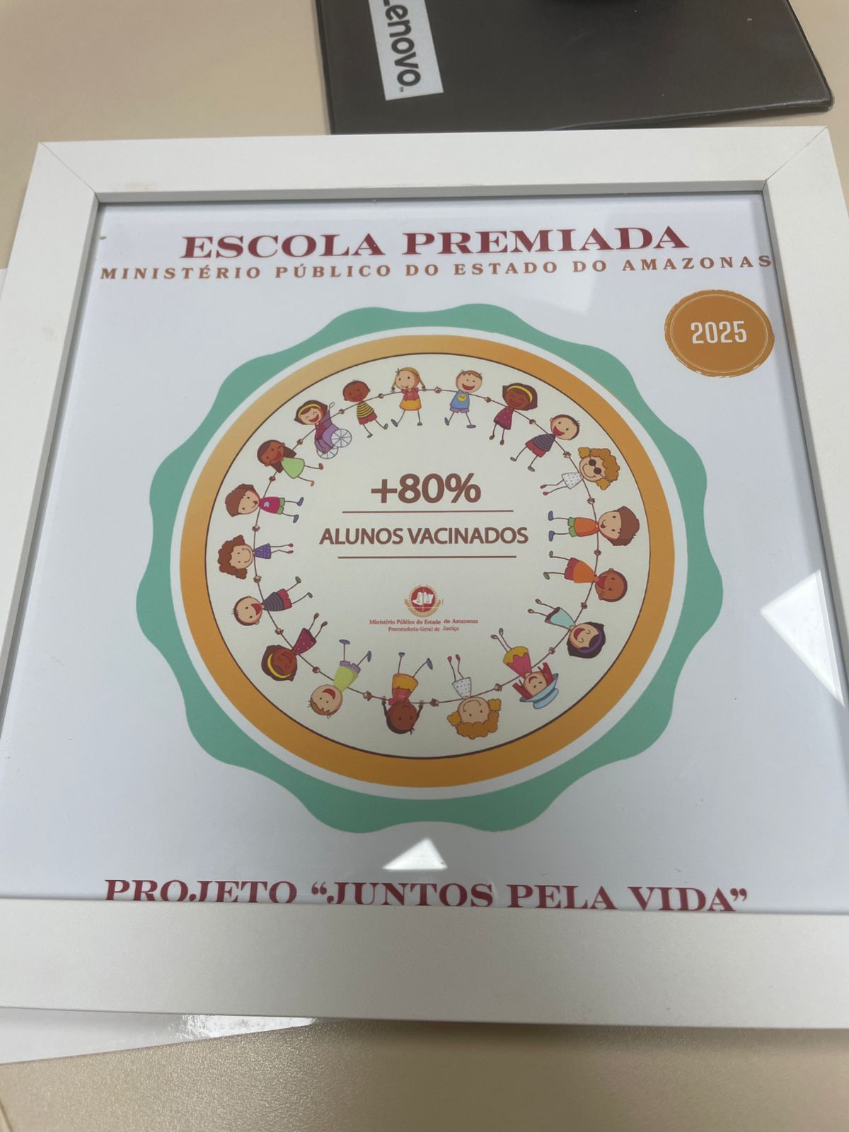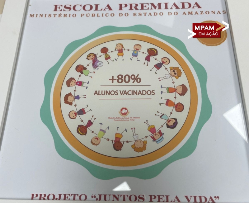 O Ministério Público do Estado do Amazonas (MPAM), por meio da Promotoria de Justiça de Autazes, realizou a entrega do selo do projeto “Juntos Pela Vida” à Escola Estadual Novo Céu, pelo alcance de 80,2% de cobertura vacinal. O selo reconhece e certifica as escolas do Amazonas que atingiram ou superaram a marca de mais de 80% de alunos vacinados.