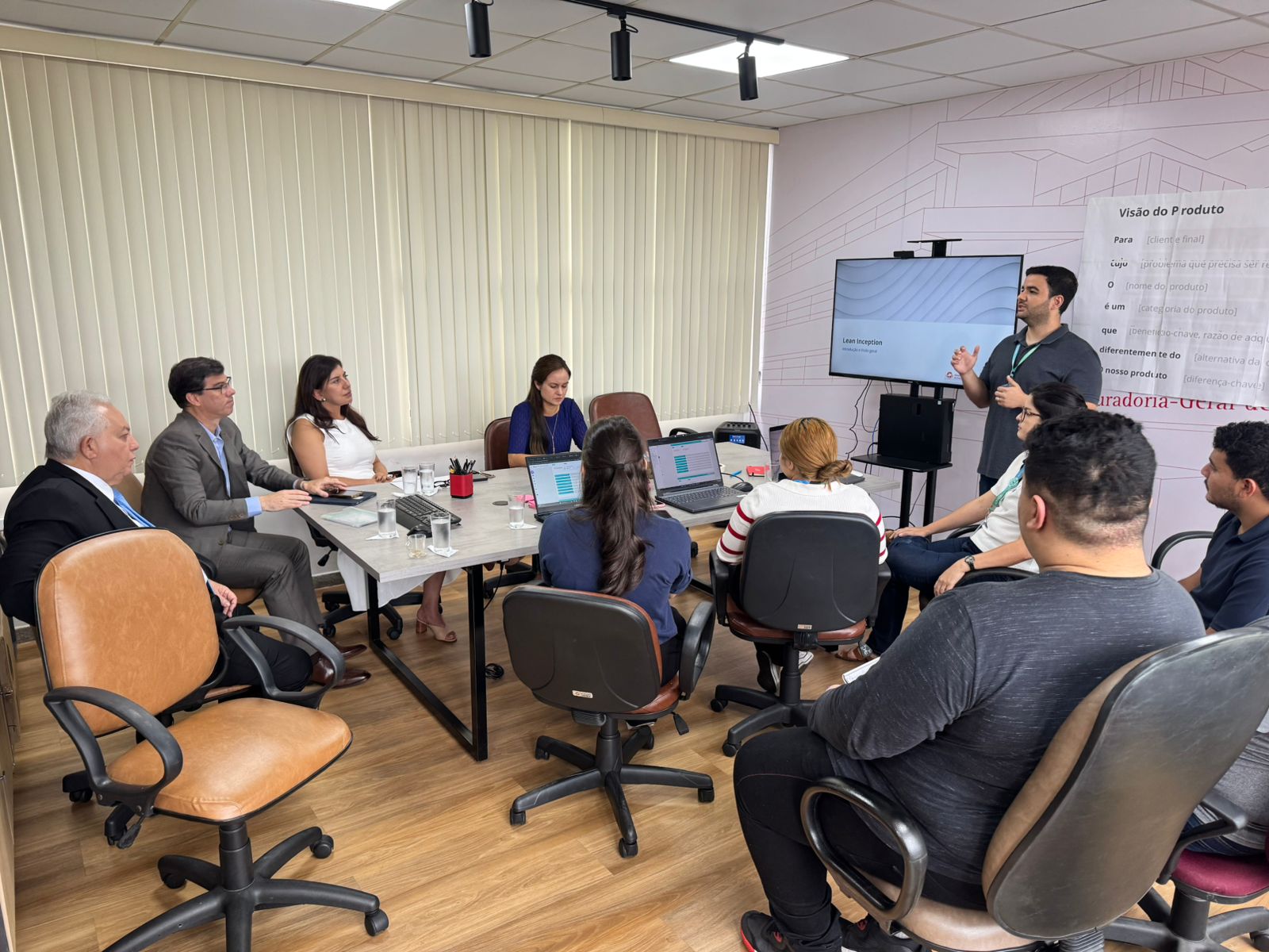 Na visita de terça (24), uma mentoria conduzida pelo INDT mobilizou promotores e agentes técnicos jurídicos (ATJs) do MP, além de representantes do iMPacta Lab, coordenados pelo promotor de Justiça Jefferson Neves de Carvalho. Na ocasião, foram apresentados o contexto institucional do VitórIA e a forma como a ferramenta será integrada ao cotidiano de trabalho, além de explicações sobre as peças jurídicas, processos, fluxos de trabalho, rotinas operacionais e as particularidades do MP.