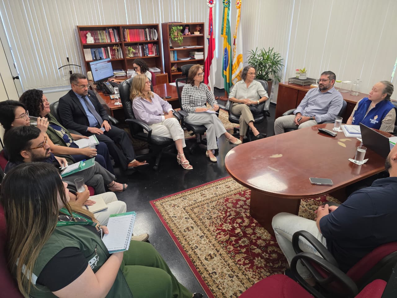 O encontro foi conduzido pela corregedora-geral Silvana Nobre de Lima Cabral, acompanhada da procuradora de Justiça Delisa Olívia Vieiralves Ferreira, coordenadora do CAO-PDC; do promotor Carlos Sérgio Edwards de Freitas, coordenador do Centro de Apoio Operacional das Promotorias de Justiça de Proteção ao Meio Ambiente, Patrimônio Histórico e da Ordem Urbanística (CAO-MAPH-URB); e da promotora Cláudia Maria Raposo da Câmara, titular da 54ª Promotoria de Justiça de Defesa dos Direitos Humanos à Saúde Pública (PRODHSP).