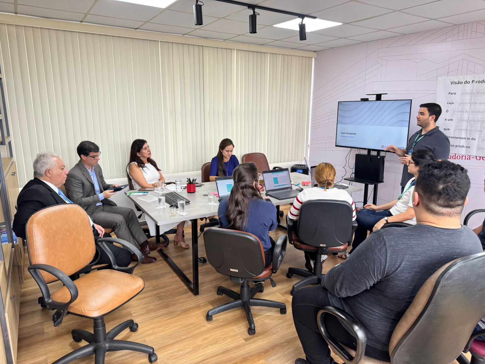 Com a presença do promotor de Justiça Jefferson Neves de Carvalho, coordenador do laboratório, a equipe do INDT apresentou a disposição das telas e a identidade visual do projeto, além da funcionalidade para o atendimento da sociedade civil — como tela de login, seleção de promotoria, página inicial, listagem e visão geral de processos, assistente virtual, resumo com apoio de assistente virtual e seleção de peças (esta última com prototipação ainda em andamento).