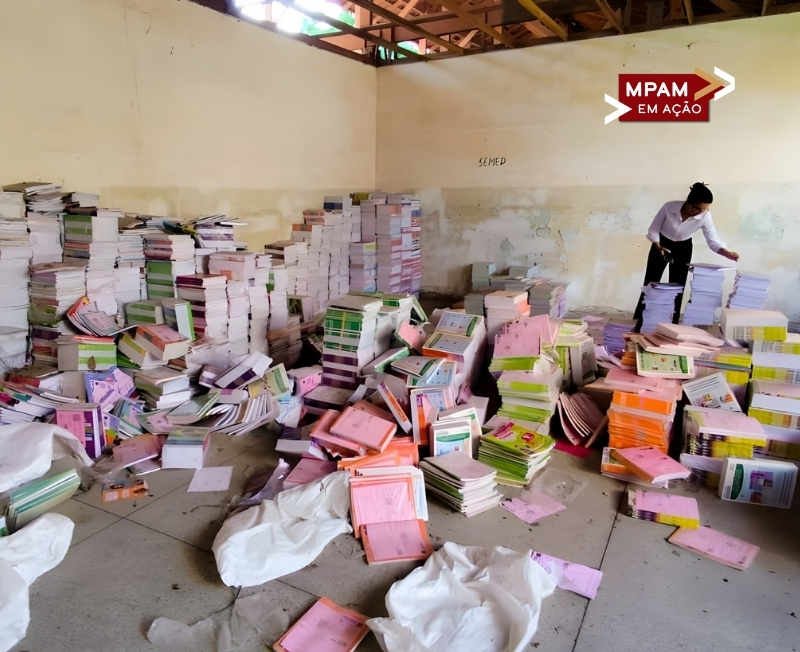 Após inspeção em obra inacabada de reforma da Escola Estadual Gilberto Mestrinho, em Nhamundá, na última terça-feira (13/01), o Ministério Público do Estado do Amazonas (MPAM) constatou a existência de grande quantidade de material didático pertencente à rede municipal de ensino, incluindo livros novos, ainda embalados, designados para o período letivo de 2025. Segundo a Promotoria de Justiça local, que instaurou procedimento preparatório, os itens estão armazenados inadequadamente, em local sem condições de conservação, organização ou controle.