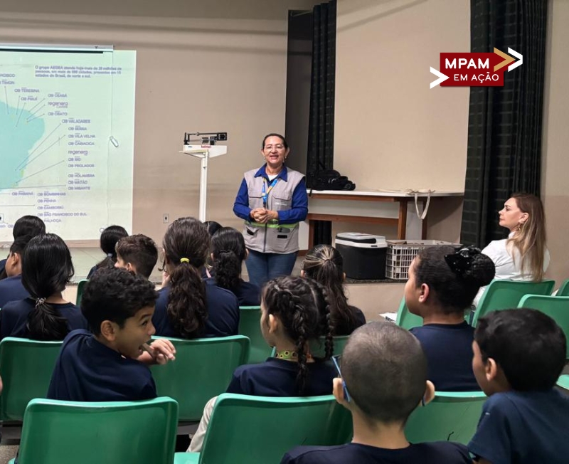 Na manhã desta quinta-feira (26/02), o Ministério Público do Estado do Amazonas (MPAM) visitou a Escola Estadual Gonçalves Dias, no bairro Dom Pedro, para ministrar uma palestra a alunos do 5º ano sobre o tratamento da água em Manaus. A atividade, no âmbito do projeto Sementes do Futuro, foi uma ação interinstitucional com a concessionária Águas de Manaus.