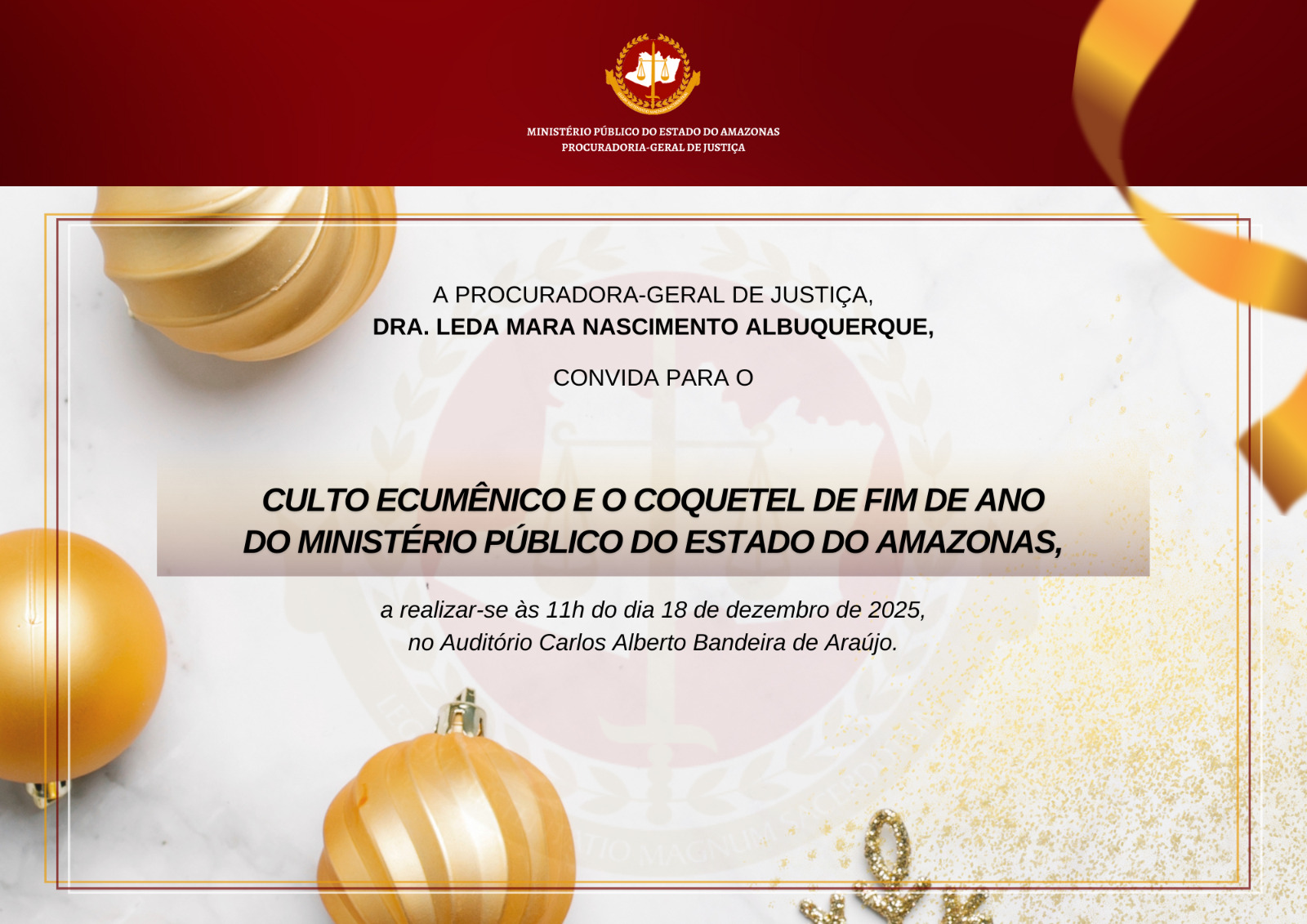 O Ministério Público do Estado do Amazonas encerra seu calendário anual com uma programação especial nesta quinta-feira, 18 de dezembro, reunindo membros, servidores e colaboradores no Auditório Carlos Alberto Bandeira de Araújo para um momento de celebração, reflexão e fortalecimento dos vínculos institucionais.